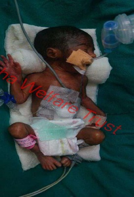 A newborn fighting for survival requires your immediate medical support.